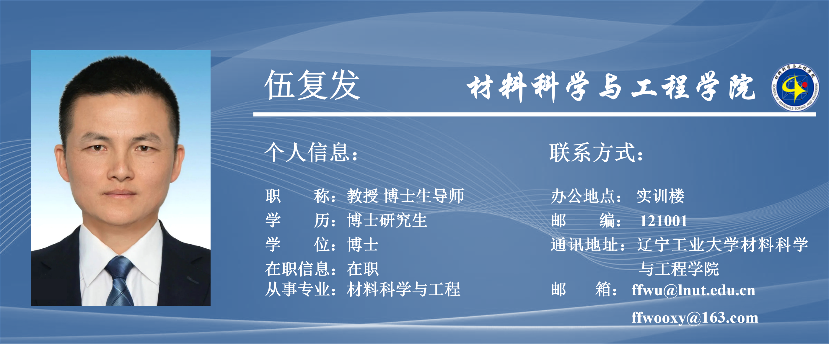 2015.12-至今 辽宁工业大学 材料科学与工程学院 教授